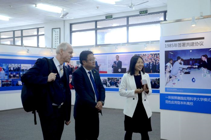 Beide Seiten führten einen intensiven Austausch zur deutsch-chinesischen Hochschulkooperation.Im Anschluss an die Sitzung besuchten die Teilnehmer die Ausstellung über die Errungenschaften des chinesisch-deutschen Gemeinschaftsaufbaus der Universität Hefei.