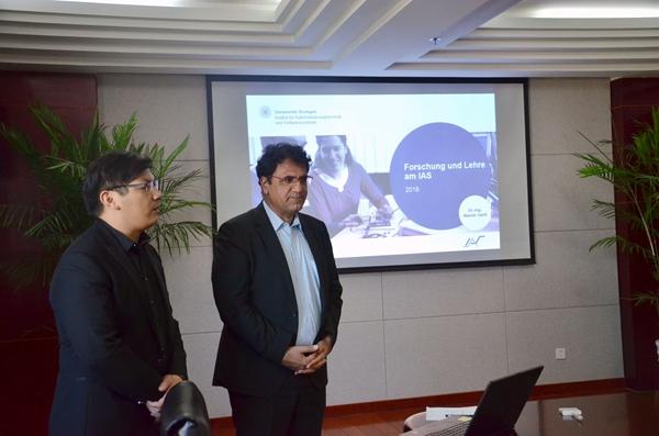 Zhou Dashuang stellte die Forschungsrichtung des Forschungsinstituts für Automatisierung an der Universität Stuttgart und die angewandten Technologien von Industrie 4.0 vor. Er sagte, dass das Forschungsinstitut darauf abziele, Forschungskompetenz zu stärken, Ausbildungen für die Technologie durchzuführen, Beratungen und Unterstützungen für kleine und mittlere Unternehmen anzubieten sowie versuchen, einige Unternehmen nach Hefei zu locken. Er hoffte, dass sich Module wie Zwillinge des Produktionssystems von Industrie 4.0 und der automatische Warentransport von Roboten weitgehend zur Reife entwickeln und sich auf lokale Unternehmen anwenden lassen könnten. Jazdi, Zimmermann, Schüller und Gösling erläuterten jeweils individualisierte Produktion und Modulproduktion unter der physischen Vernetzung von Industrie 4.0, Entwicklung der digitalen Produkte und Planung der Produktionslinien sowie Kontrolle über automatisierte Bestellungen und kollektive Intelligenz und vieles mehr.