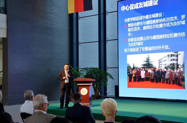 Er erwähnte, dass die Universität Hefei als eine Universität gilt, die in der Reform entstanden, in der Öffnung aufgewachsen sei, sich in der Innovation entwickelte und als „Xiaogang-Dorf“ in der Reform der chinesischen Hochschulausbildung bezeichnet wurde. Im Bereich der Zusammenarbeit mit der deutschen Seite gehe die Universität Hefei auf einem charakteristischen Weg, wobei die Universität Hefei Forschung, Innovation und Praxis vom deutschen Ausbildungssystem für anwendungsorientierte Fachkräfte als Beispiel nehme und modulare Unterrichte aufgestellt habe.